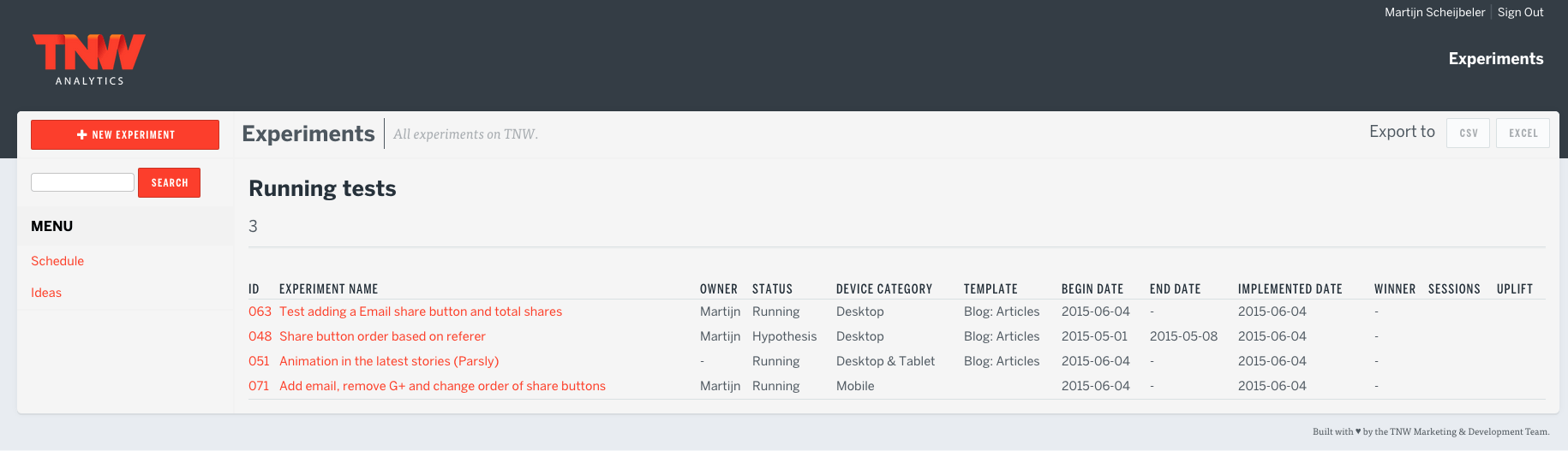 Tipp: Martijn hat auf dem ConversionSummit 2015 in Frankfurt den Aufbau des Testing-Programmes bei The Next Web näher erläutert. Die Folien finden Sie hier