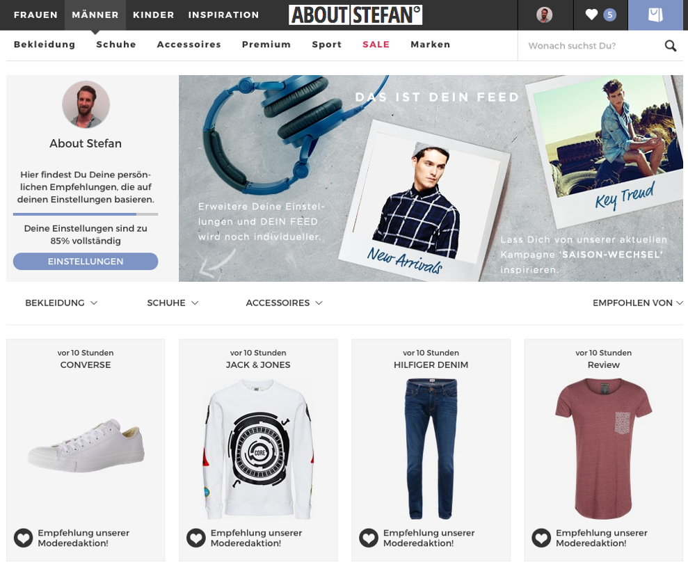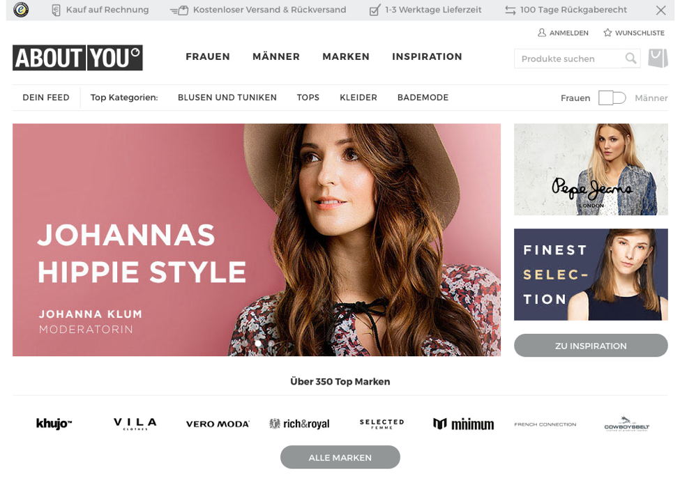 Seit Ende 2014 testen Stefan und sein Team mit Optimizely die beiden Domains aboutyou.at und aboutyou.de, wobei der Schwerpunkt einerseits auf Kategorie- und Produktseiten und andererseits auf der Homepage liegt. Auf erstere konzentriert sich der Traffic des Search Engine Marketing (SEM) und der Product Listing Ads, die Homepage ist vor allem für das Branding von Bedeutung.