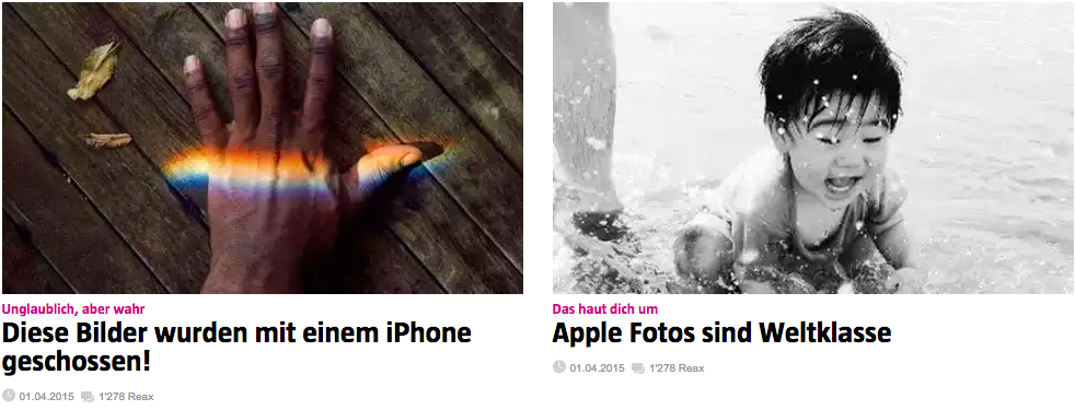 Für eine Bildergalerie von mit dem iPhone gemachten Fotos testete Blick verschiedene Kombinationen von Überschrift & Teaser-Bild.