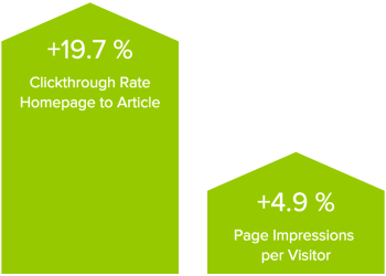 Das Testen verschiedener Überschriften & Teaser-Bilder hatte eine Steigerung der CTR zu den Artikeln und höhere Page-Impressions pro Besucher zur Folge.